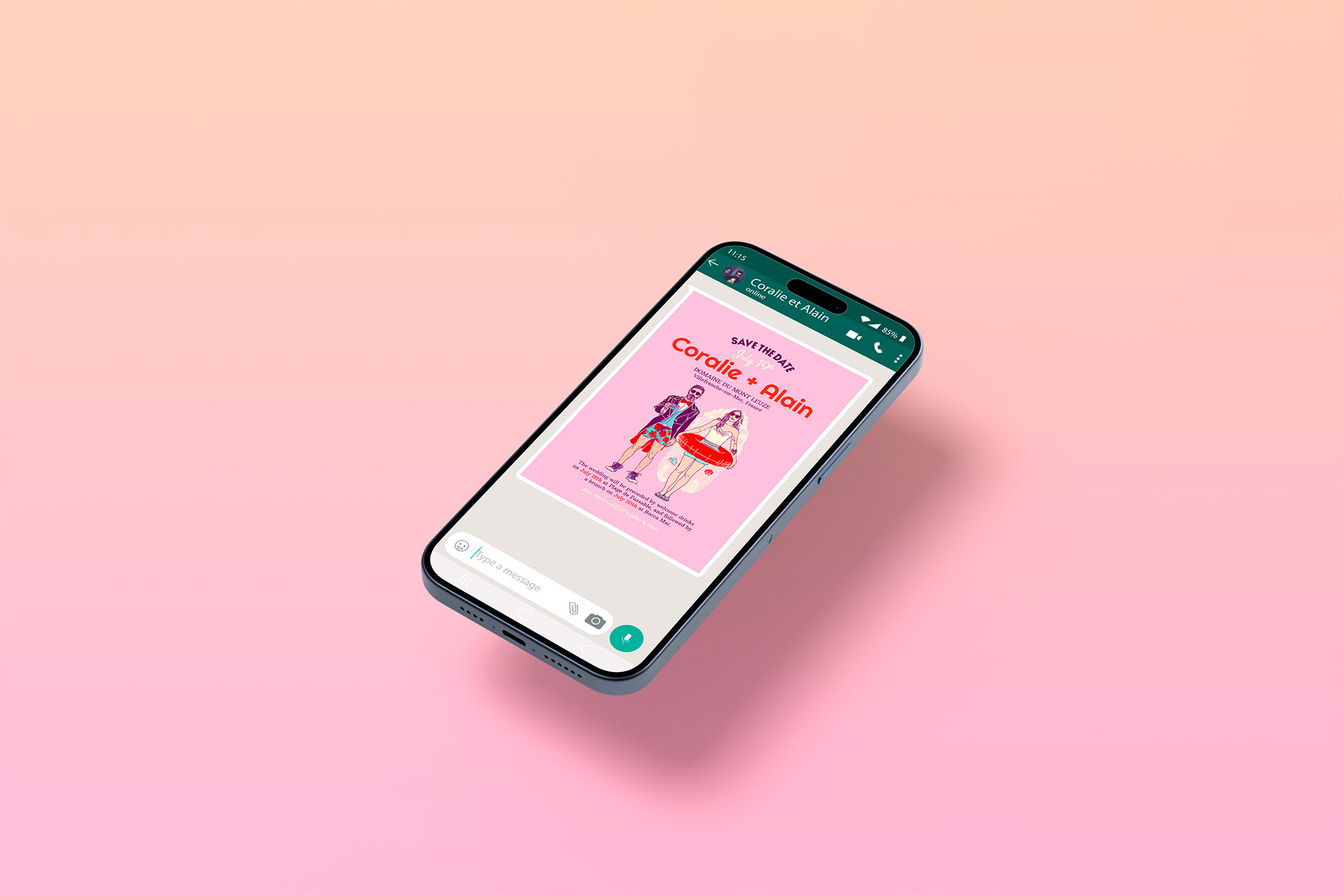 Coralie et Alain ont choisi d'envoyer leur faire-part sous forme numérique, avec Whatsapp, à tout leur réseau familial et amical, à l'international.
